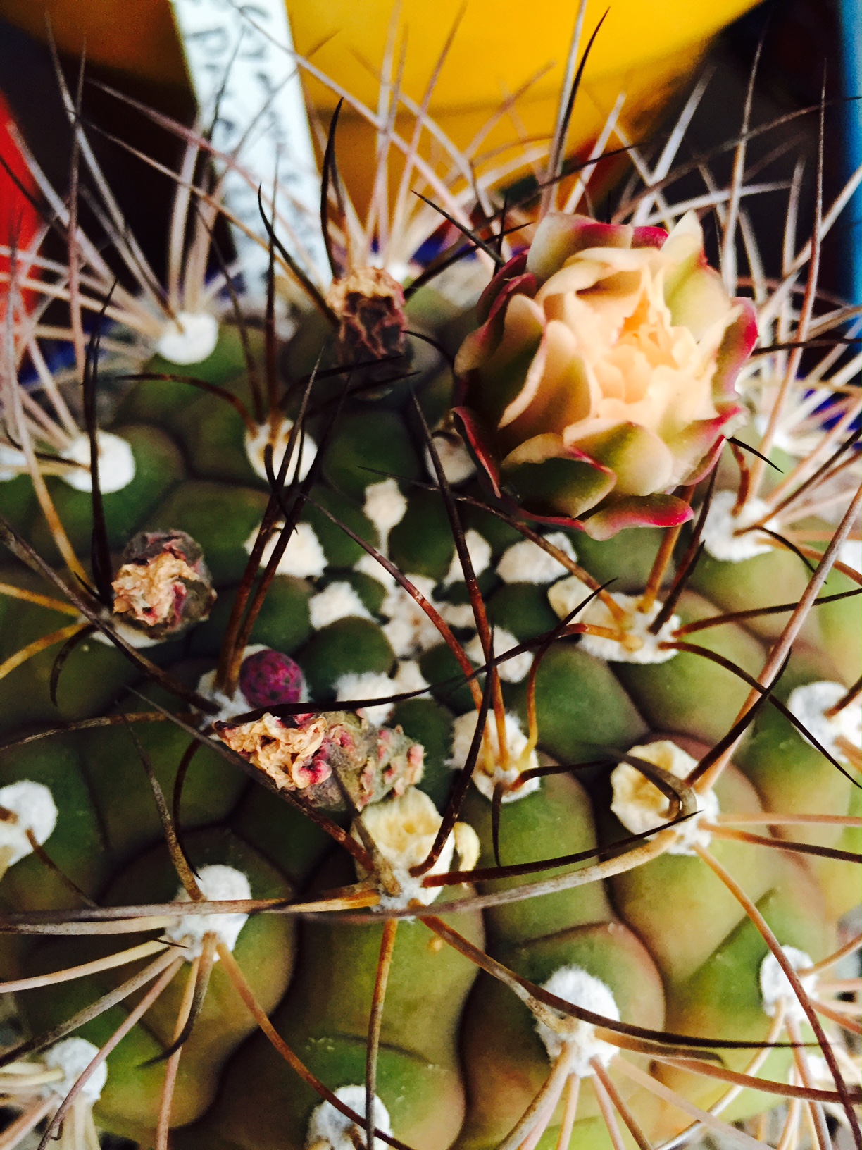 One of the plants that needed a new, larger home was my gymnocalycium pflanzii v. albipulpa, which I bought from EcoGro about a little over a year ago. It is a fabulous cactus (and I miraculously haven’t killed it yet) and it flowers consistently – last year and this year I’ve gotten 4-7 flowers – sometimes 2-3 will bloom at once, but more often than not one bud will blossom, and then a few days later another one will open.